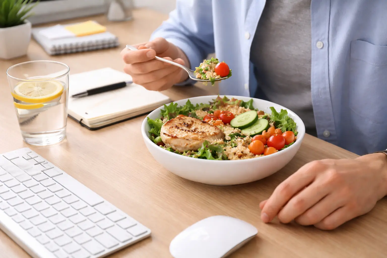 Tu alimentación debe adaptarse a tu nivel de actividad real durante el día. Aquí tienes cómo gestionar tu nutrición en la oficina o el “home office”: